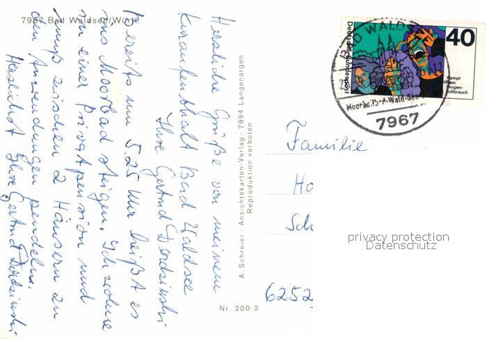 72859625 alte Postkarte Bad Waldsee Kirche Park postalisch gelaufen Erhaltung siehe scans [NatalD47] KatCode: 11110008436009