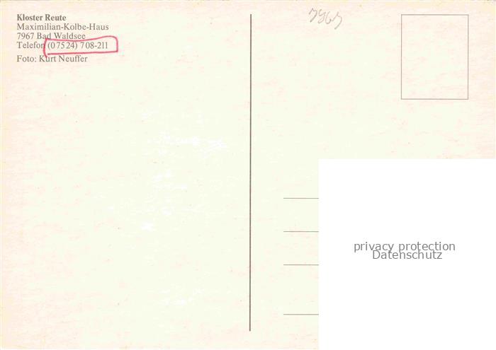 74053096 Bad Waldsee Kloster Reute postalisch nicht gelaufen Erhaltung siehe scans [WerneD78] KatCode: 11110008436009