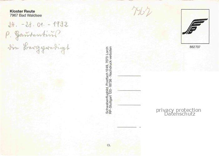 74053382 Bad Waldsee Kloster Reute Fliegeraufnahme postalisch nicht gelaufen Erhaltung siehe scans [WerneD78] KatCode: 11110008436009