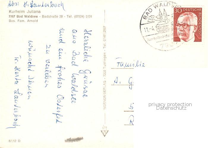 73858560 alte Postkarte Bad Waldsee Kurheim Juliana postalisch gelaufen Erhaltung siehe scans [FriedD77] KatCode: 11110008436009