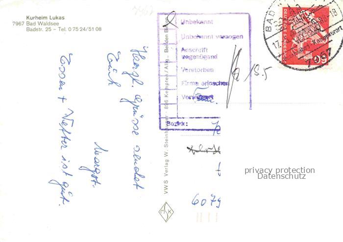 74053105 alte Postkarte Bad Waldsee Kurheim Lukas postalisch gelaufen Erhaltung siehe scans [WerneD78] KatCode: 11110008436009
