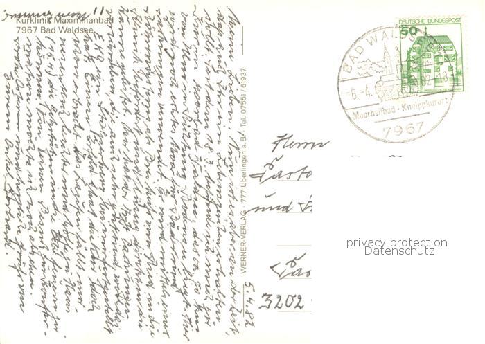 73780243 alte Postkarte Bad Waldsee Kurklinik Maximilianbad postalisch gelaufen Erhaltung siehe scans [WerneD78] KatCode: 11110008436009