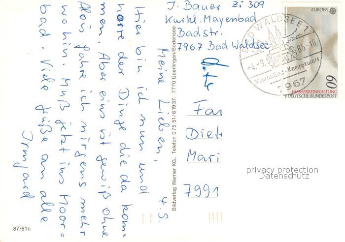 73124262 alte Postkarte Bad Waldsee Kurklinik Mayenbad postalisch gelaufen Erhaltung siehe scans [KathaD81] KatCode: 11110008436009