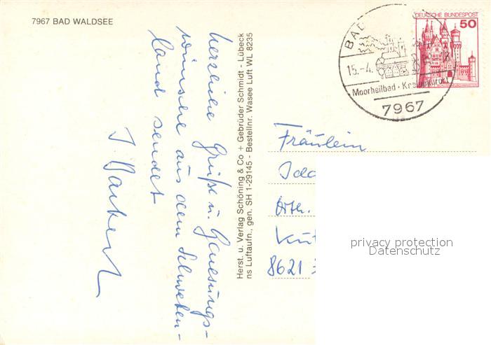 73719409 alte Postkarte Bad Waldsee Kurort Stadtkirche postalisch gelaufen Fliegeraufnahme Erhaltung siehe scans [FriedD77] KatCode: 11110008436009