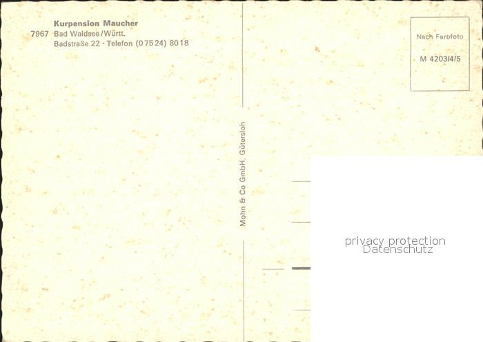 72059308 Bad Waldsee Kurpension Maucher Gaststube Seepanorama Kirche postalisch nicht gelaufen Erhaltung siehe scans KatCode: 11110008436009