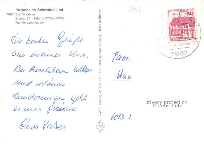 74053097 alte Postkarte Bad Waldsee Kurpension Schwabenland postalisch gelaufen Erhaltung siehe scans [WerneD78] KatCode: 11110008436009