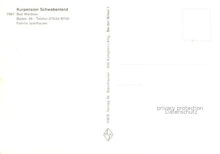 73663201 Bad Waldsee Kurpension Schwabenland postalisch nicht gelaufen Erhaltung siehe scans [FriedD77] KatCode: 11110008436009