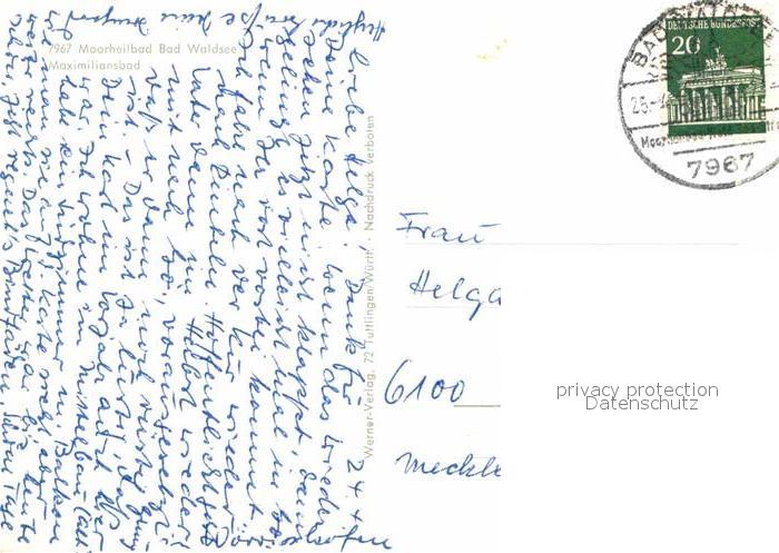 72907086 alte Postkarte Bad Waldsee Maximiliansbad postalisch gelaufen Erhaltung siehe scans [FriedD77] KatCode: 11110008436009