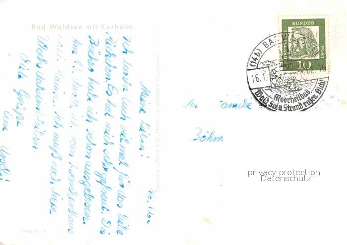 72794835 alte Postkarte Bad Waldsee mit Kurheim Moorheilbad Fliegeraufnahme postalisch gelaufen Erhaltung siehe scans [FriedD77] KatCode: 11110008436009