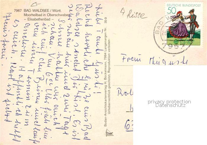 72762154 alte Postkarte Bad Waldsee Moorbad Kurhaus Anwendungen Kurhalle Kurkonzert postalisch gelaufen Erhaltung siehe scans [WerneD78] KatCode: 11110008436009