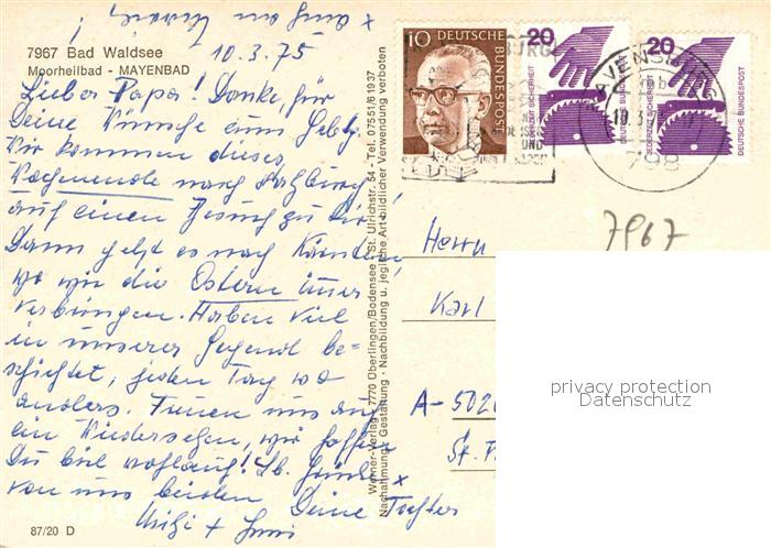 72872385 alte Postkarte Bad Waldsee Moorheilbad Mayenbad postalisch gelaufen Erhaltung siehe scans [FriedD77] KatCode: 11110008436009