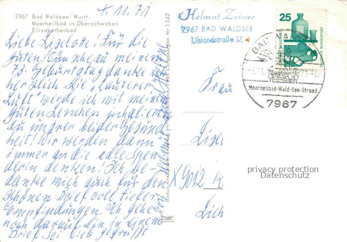 74028142 alte Postkarte Bad Waldsee Moorheilbad Oberschwaben Elisabethenbad postalisch gelaufen Erhaltung siehe scans [FriedD77] KatCode: 11110008436009