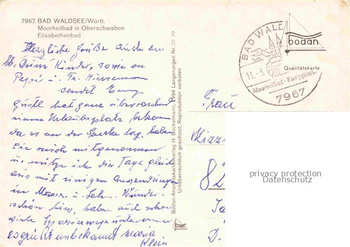 74028143 alte Postkarte Bad Waldsee Moorheilbad Oberschwaben Elisabethenbad postalisch gelaufen Erhaltung siehe scans [FriedD77] KatCode: 11110008436009