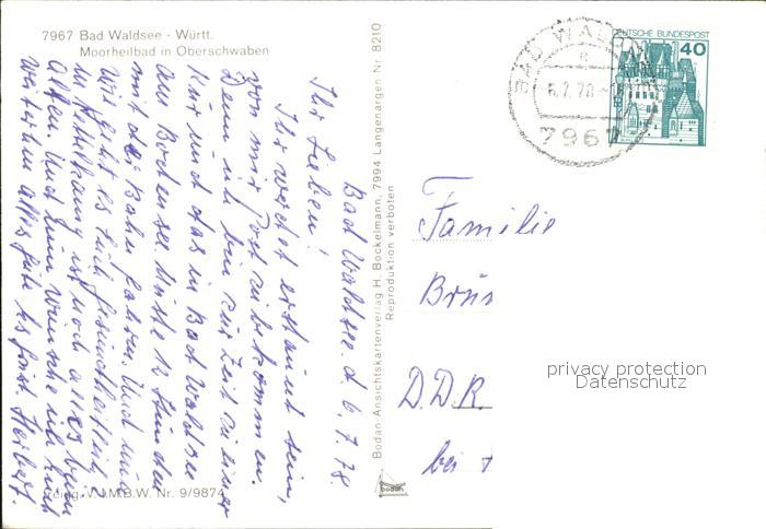 72523161 alte Postkarte Bad Waldsee Moorheilbad Panorama postalisch gelaufen Erhaltung siehe scans KatCode: 11110008436009