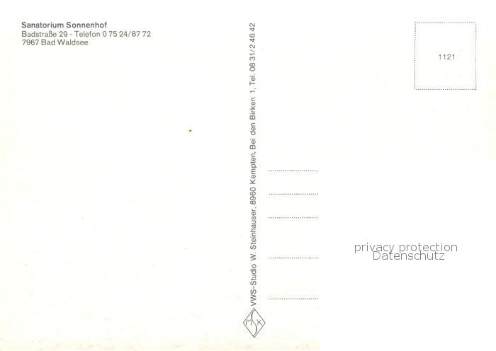73791760 Bad Waldsee Sanatorium Sonnenhof postalisch nicht gelaufen Erhaltung siehe scans [WerneD78] KatCode: 11110008436009