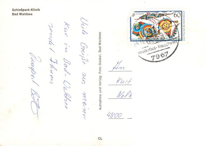 73887745 alte Postkarte Bad Waldsee Schlosspark Klinik postalisch gelaufen Erhaltung siehe scans [WerneD78] KatCode: 11110008436009