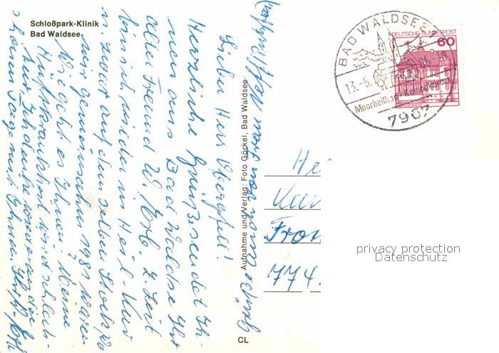72677596 alte Postkarte Bad Waldsee Schlossparkklinik postalisch gelaufen Erhaltung siehe scans [FriedD77] KatCode: 11110008436009