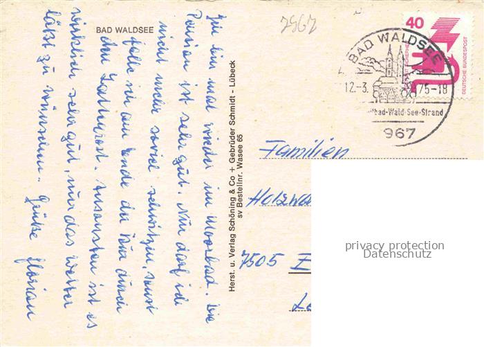 74053349 alte Postkarte Bad Waldsee Seepartie Kirche postalisch gelaufen Erhaltung siehe scans [WerneD78] KatCode: 11110008436009