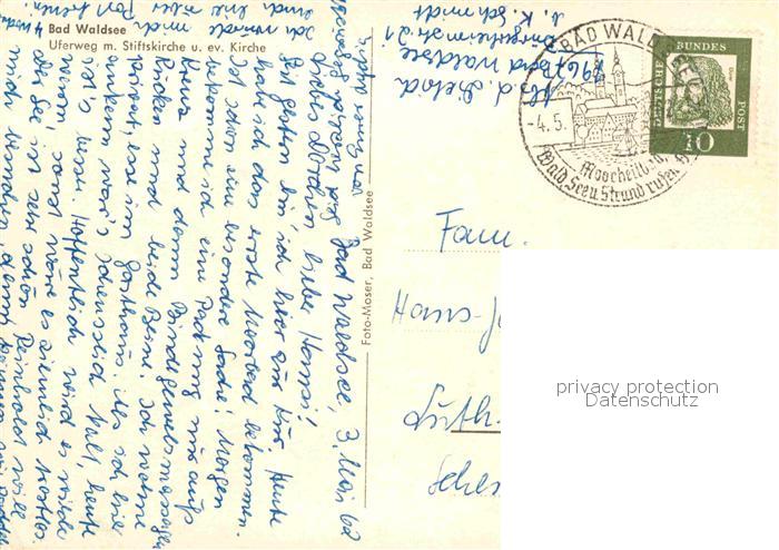 72757964 alte Postkarte Bad Waldsee Uferweg Stiftskirche postalisch gelaufen Erhaltung siehe scans [NatalD47] KatCode: 11110008436009