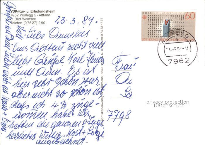 72480940 alte Postkarte Bad Waldsee VdK Kur und Erholungsheim Alttann postalisch gelaufen Erhaltung siehe scans KatCode: 11110008436009