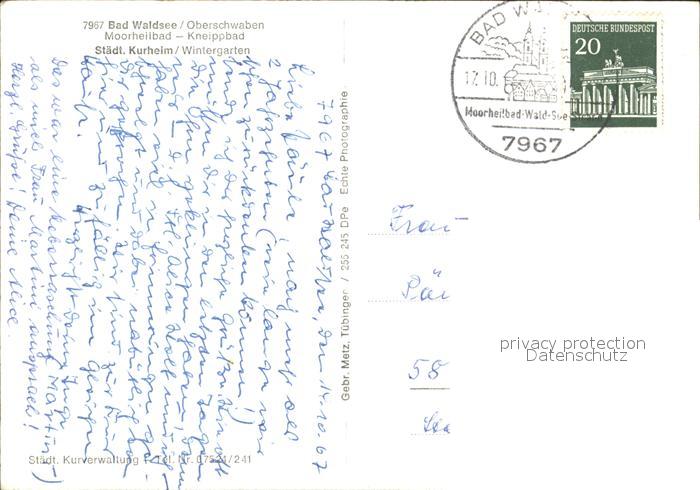 72153537 alte Postkarte Bad Waldsee Wintergarten Staedtisches Kurheim postalisch gelaufen Erhaltung siehe scans KatCode: 11110008436009