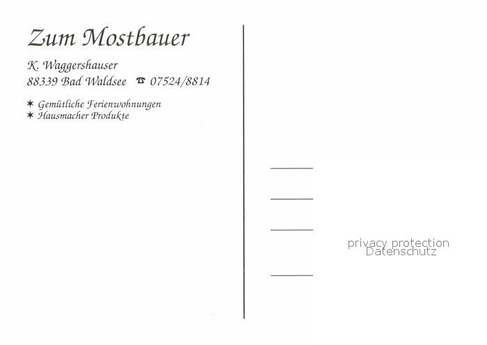 72720733 Bad Waldsee Zum Mostbauer postalisch nicht gelaufen Erhaltung siehe scans [LiesaD40] KatCode: 11110008436009