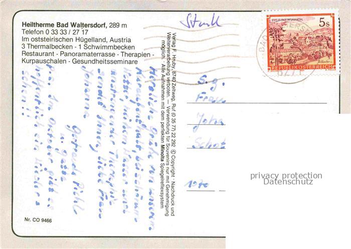 74155991 alte Postkarte Bad Waltersdorf Steiermark AT Panorama Heiltherme Hallenbad Restaurant postalisch gelaufen Erhaltung siehe scans [WerneD78] KatCode: 11390224060748