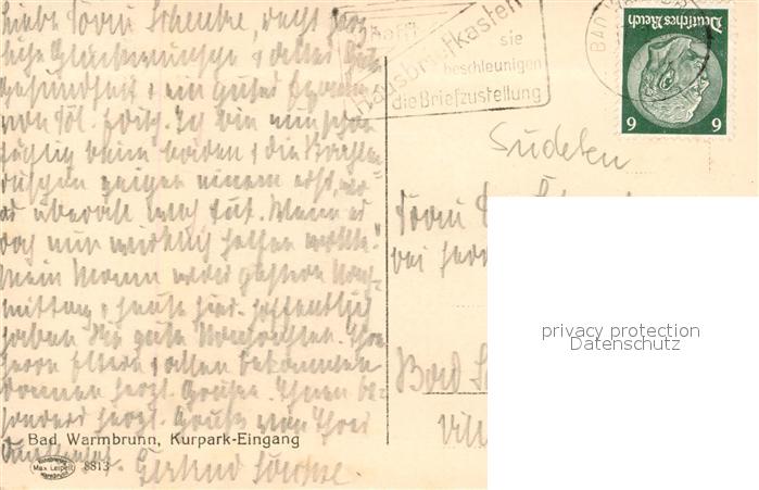 old postcard Bad Warmbrunn Kurpark Eingang postalisch gelaufen Erhaltung siehe scans [FriedD77]