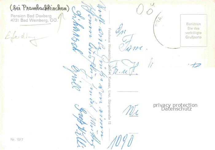 74155922 alte Postkarte Bad Weinberg Prambachkirchen Linz-Wels Oberoesterreich AT Pension Bad Daxberg postalisch gelaufen Erhaltung siehe scans [WerneD78] KatCode: 11390312040508