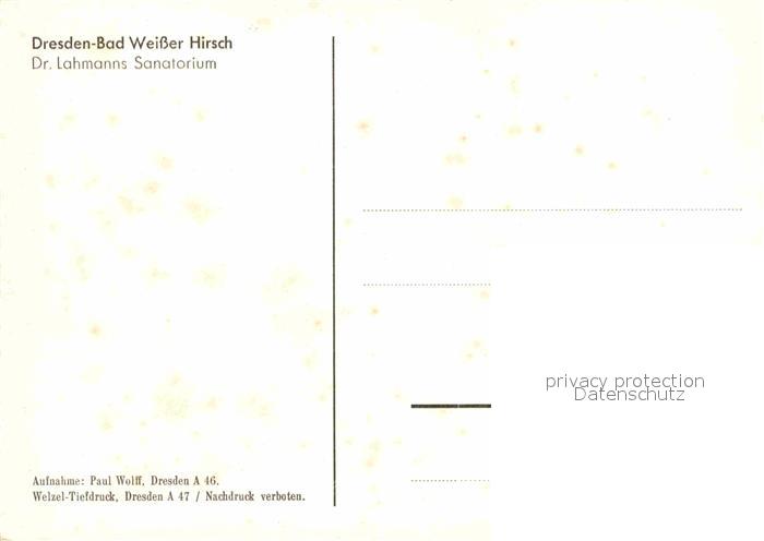 72648663 Bad Weisser Hirsch Dr. Lahmanns Sanatorium postalisch nicht gelaufen Erhaltung siehe scans [NatalD47] KatCode: 11110014262000