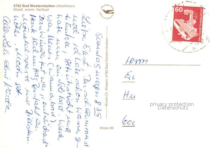 73214867 alte Postkarte Bad Westernkotten Freibad Kurpark Fontaene Kurhaus Saline Chronik postalisch gelaufen Erhaltung siehe scans [FriedD77] KatCode: 11110005974016