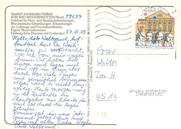 73669848 alte Postkarte Bad Westernkotten Hellweg Sole Thermen mit Freibecken postalisch gelaufen Erhaltung siehe scans [FriedD77] KatCode: 11110005974016