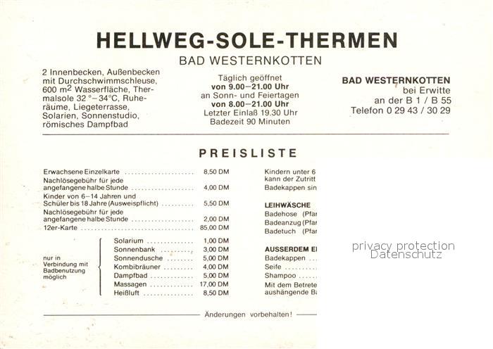 72935291 Bad Westernkotten Hellweg Sole Thermen postalisch nicht gelaufen Werbekarte (keine Postkarte) Erhaltung siehe scans [LiesaD40] KatCode: 11110005974016