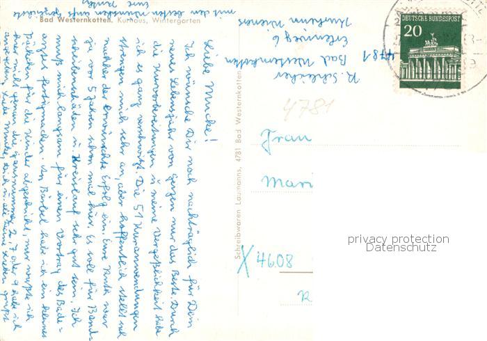 73780563 alte Postkarte Bad Westernkotten Kurhaus Wintergarten postalisch gelaufen Erhaltung siehe scans [WerneD78] KatCode: 11110005974016