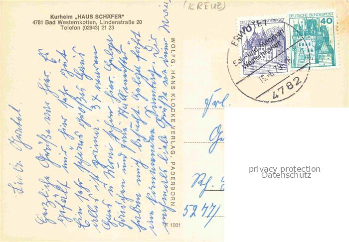 74028138 alte Postkarte Bad Westernkotten Kurheim Haus Schaefer postalisch gelaufen Erhaltung siehe scans [FriedD77] KatCode: 11110005974016