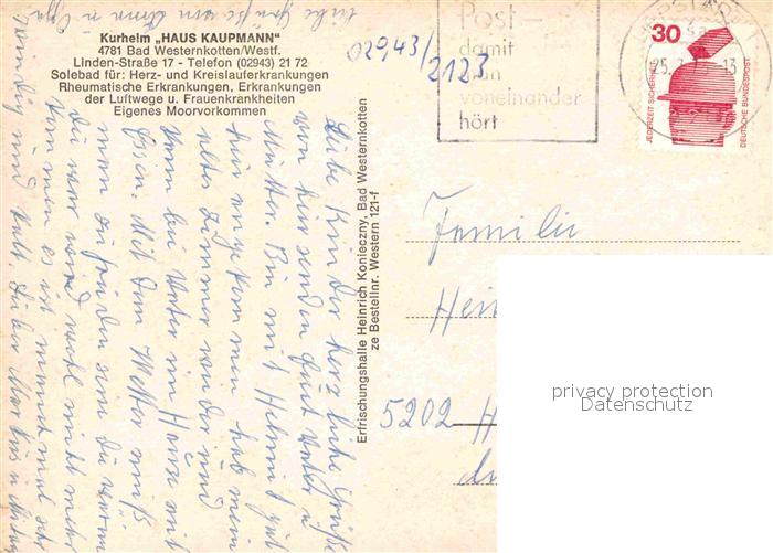 72755476 alte Postkarte Bad Westernkotten Kurheim Kaupmann postalisch gelaufen Erhaltung siehe scans [WerneD78] KatCode: 11110005974016