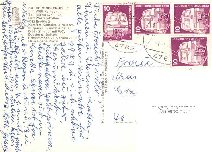72750422 alte Postkarte Bad Westernkotten Kurheim Solequelle postalisch gelaufen Erhaltung siehe scans [FriedD77] KatCode: 11110005974016