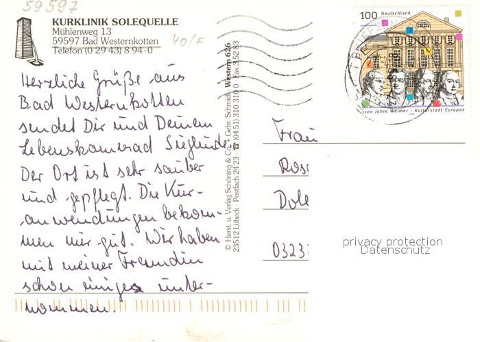 73174520 alte Postkarte Bad Westernkotten Kurklinik Solequelle Schwimmbad postalisch gelaufen Erhaltung siehe scans [LiesaD40] KatCode: 11110005974016
