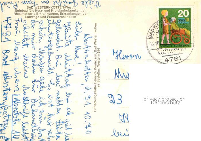 72729773 alte Postkarte Bad Westernkotten Kurmittelhaus Minigolf Kurpark Saline Wandelhalle postalisch gelaufen Erhaltung siehe scans [AndreD76] KatCode: 11110005974016