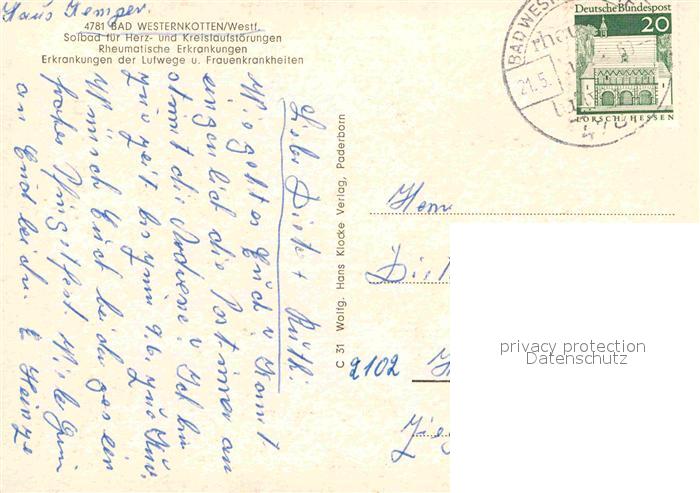 72713027 alte Postkarte Bad Westernkotten Kurpark Haus am Park Haus Margareta postalisch gelaufen Erhaltung siehe scans [LiesaD40] KatCode: 11110005974016