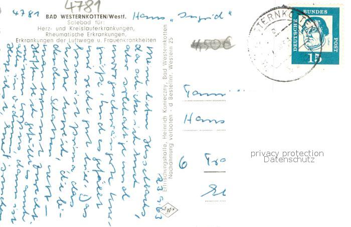 73695043 alte Postkarte Bad Westernkotten Saline Ehrenmal Kurhaus Soleturm Wandelhalle Alte Fachwerkhaeuser Pension Markoni Zehnthof Kurmittelhaus Schloss Schwarzengraben postalisch gelaufen Erhaltung siehe scans [WerneD78] KatCode: 11110005974016