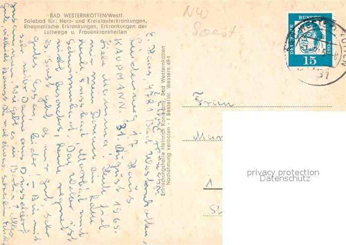 72904799 alte Postkarte Bad Westernkotten Saline Fachwerkhaeuser Wandelhalle Kurhaus Soleturm Ehrenmal postalisch gelaufen Erhaltung siehe scans [AndreD76] KatCode: 11110005974016