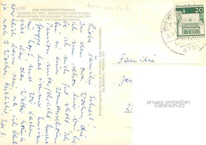 72757981 alte Postkarte Bad Westernkotten Saline Kurhaus Kirche postalisch gelaufen Erhaltung siehe scans [NatalD47] KatCode: 11110005974016
