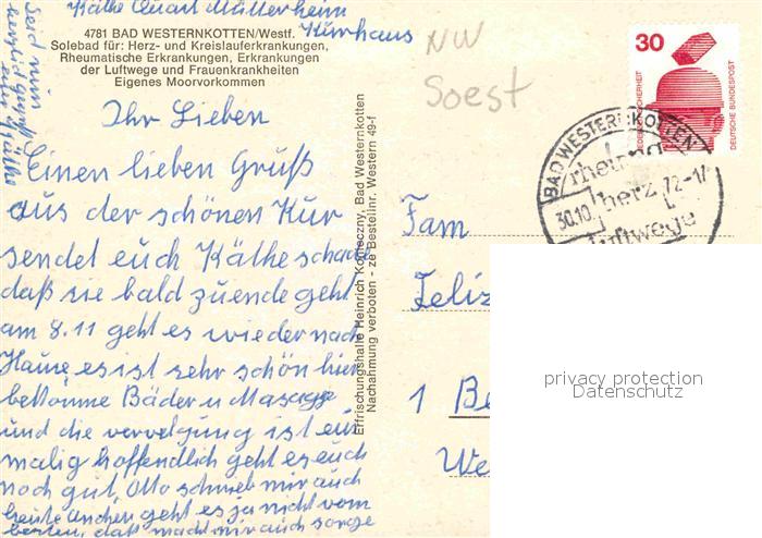 72905903 alte Postkarte Bad Westernkotten Saline Pension Schaefer Kurmittelhaus Kurhaus Ehrenmal Wandelhalle postalisch gelaufen Erhaltung siehe scans [AndreD76] KatCode: 11110005974016