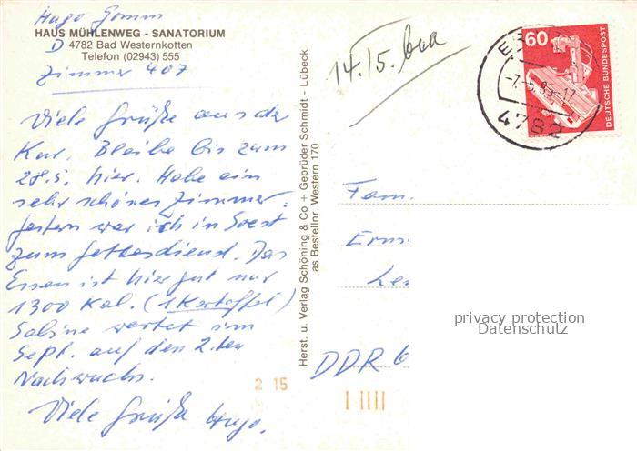 74029276 alte Postkarte Bad Westernkotten Sanatorium Haus Muehlenweg Speisesaal Hallenbad Aufenthaltsraum postalisch gelaufen Erhaltung siehe scans [FriedD77] KatCode: 11110005974016