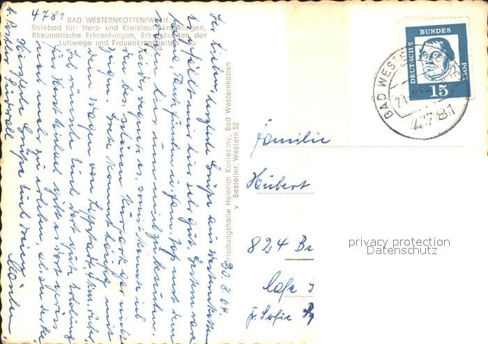 72203652 alte Postkarte Bad Westernkotten Solebad Kurhaus Salinen postalisch gelaufen Erhaltung siehe scans KatCode: 11110005974016