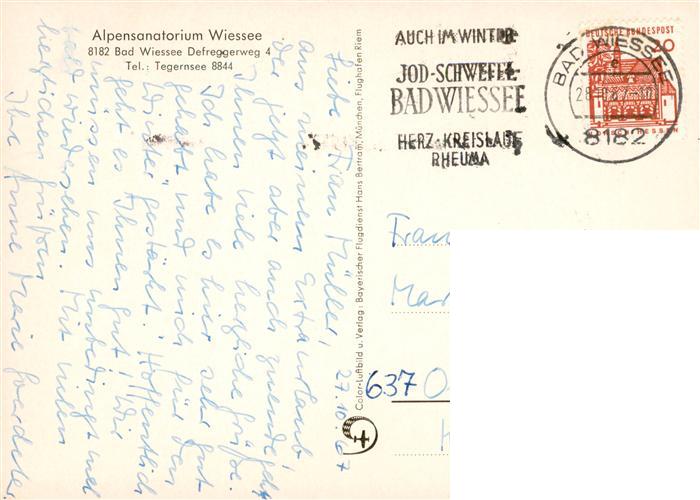 73909398 alte Postkarte Bad Wiessee Alpensanatorium Wiessee Fliegeraufnahme postalisch gelaufen Erhaltung siehe scans [WerneD78] KatCode: 11110009182111