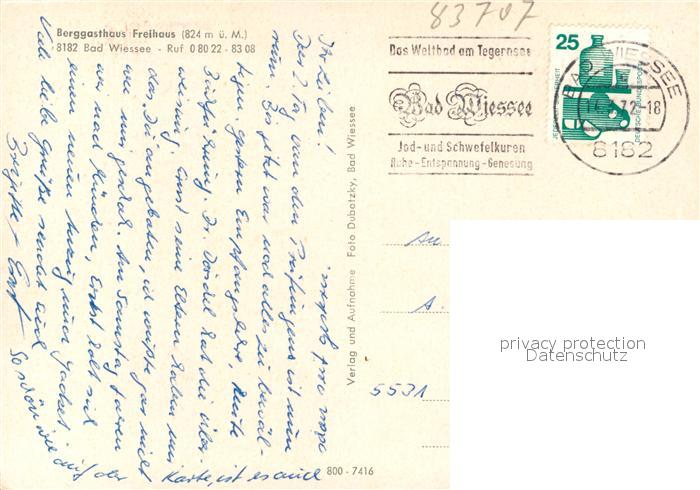 73107405 alte Postkarte Bad Wiessee Berggasthaus Freihaus postalisch gelaufen Erhaltung siehe scans [NatalD47] KatCode: 11110009182111