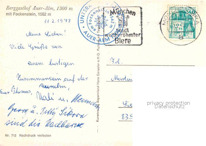 72653622 alte Postkarte Bad Wiessee Berggasthof Auer Alm mit Fockenstein Winterpanorama Bayerische Voralpen postalisch gelaufen Erhaltung siehe scans [FriedD77] KatCode: 11110009182111
