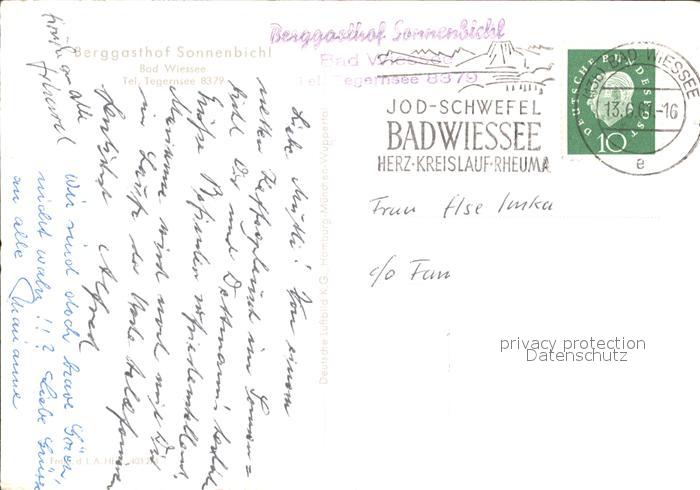 71859978 alte Postkarte Bad Wiessee Berggasthof Sonnenbichl Fliegeraufnahme postalisch gelaufen Erhaltung siehe scans KatCode: 11110009182111